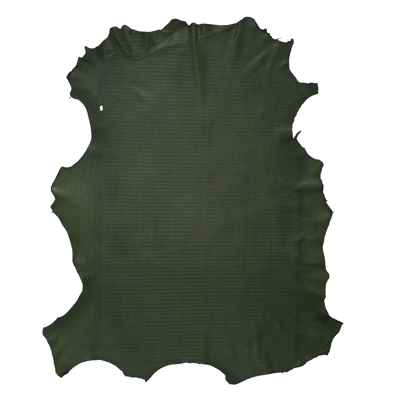 - Naked hide with embossed weave. Hand finished for depth. Light Protective Finish. Embossed pattern centered. Edges not embossed.
