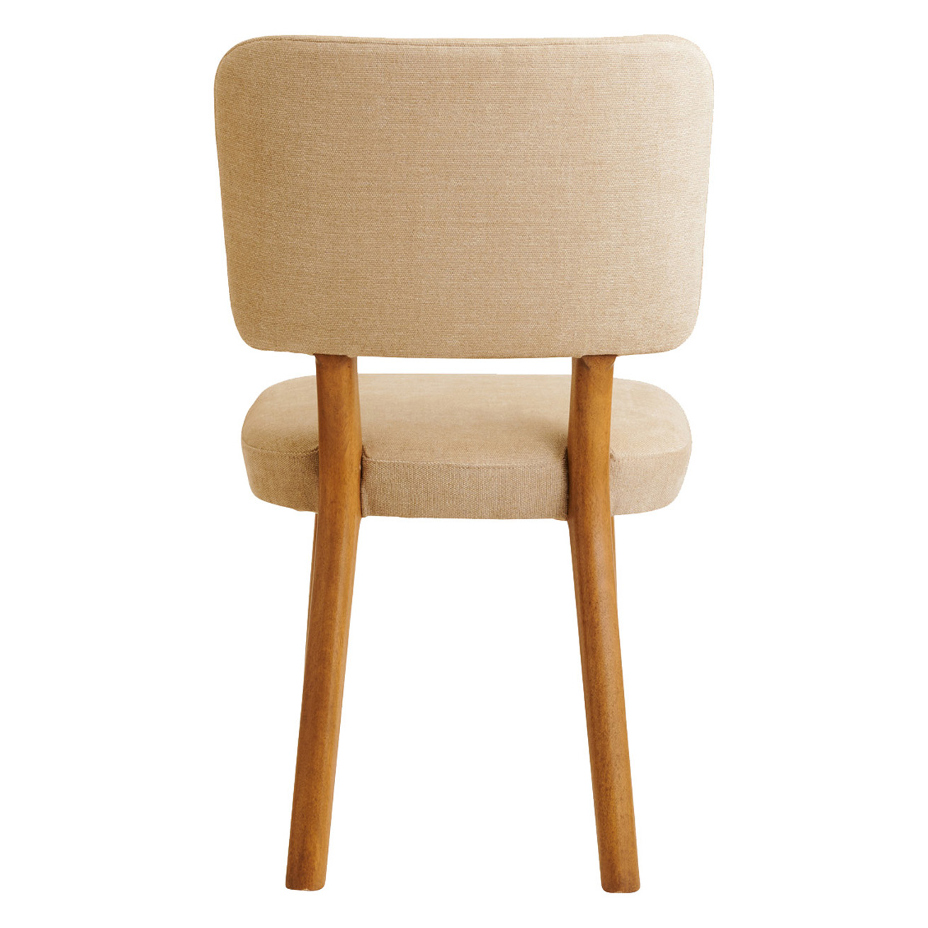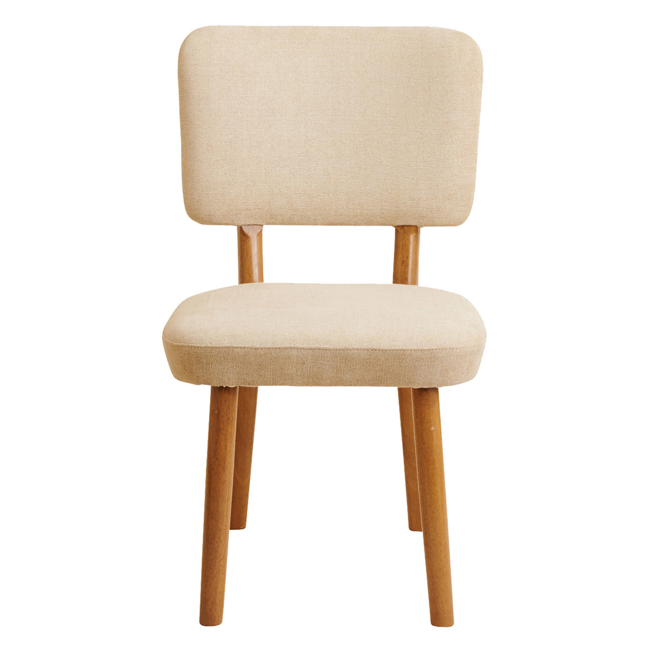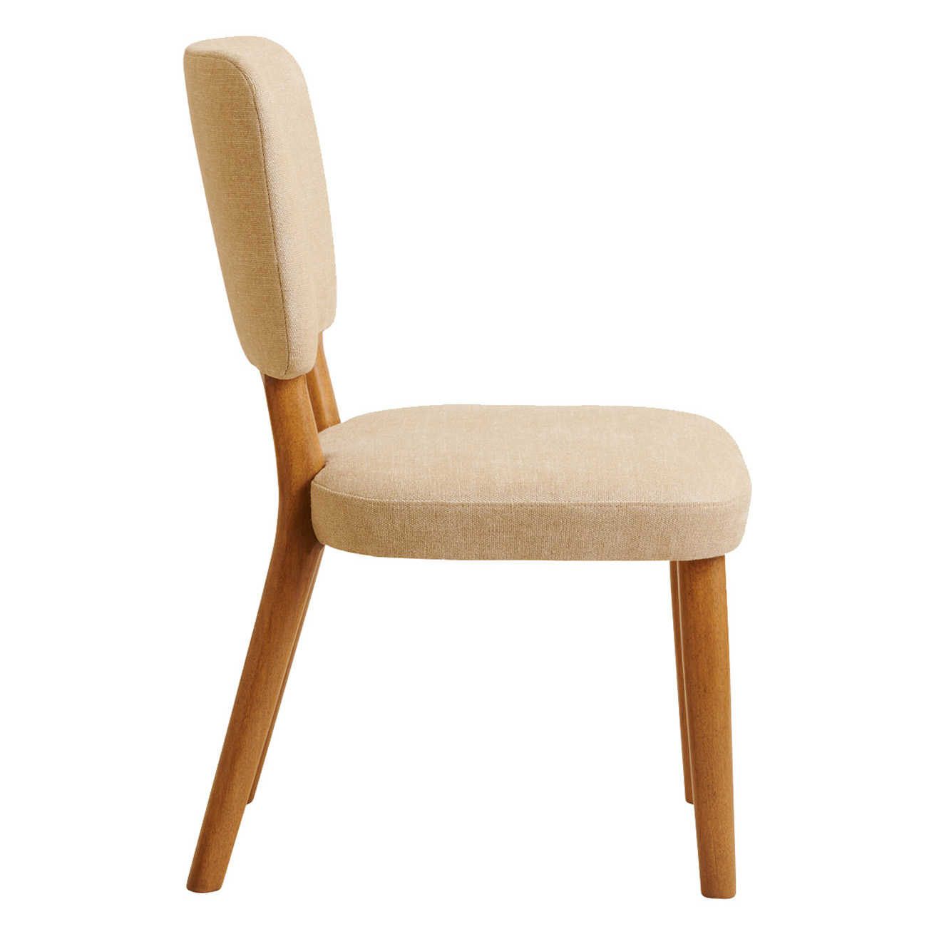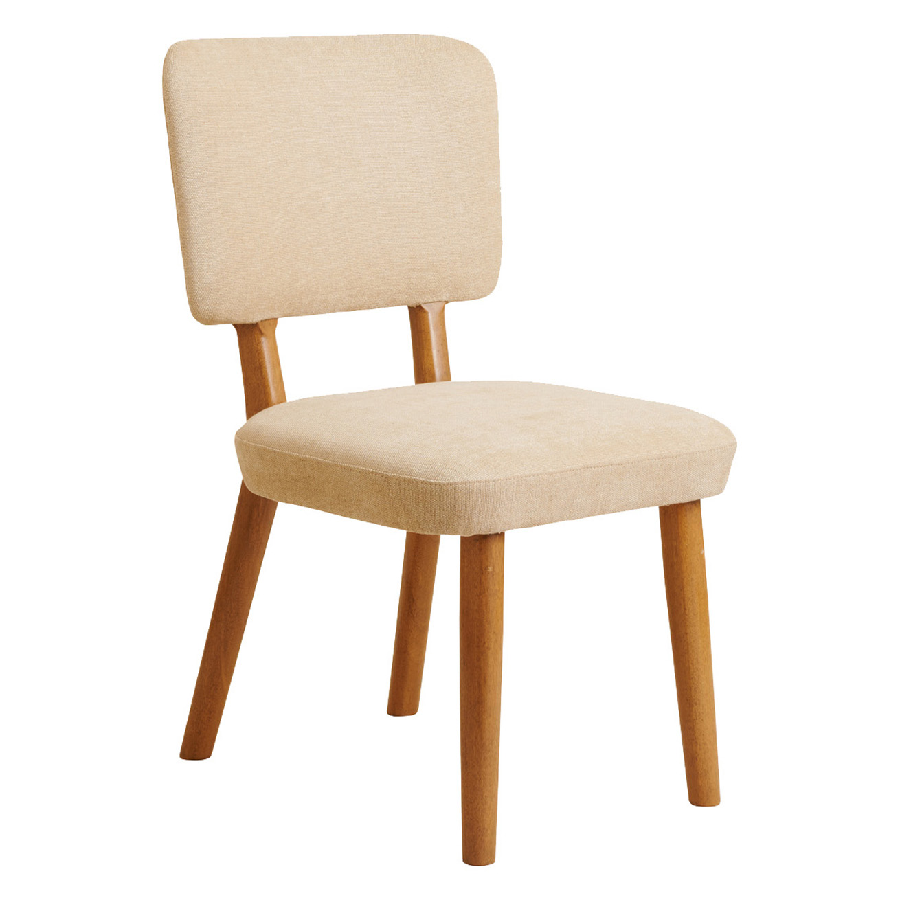 Modern dining chair with tight upholstered seat and back.
