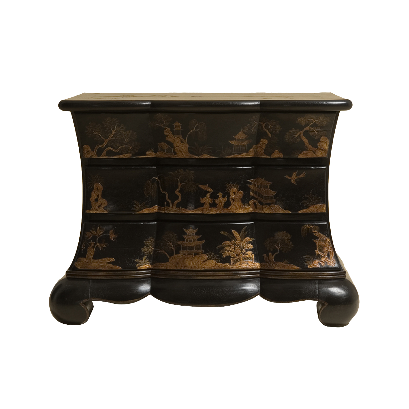 - Finish: Tete de Negre Crackled Laquer with Chinoiserie