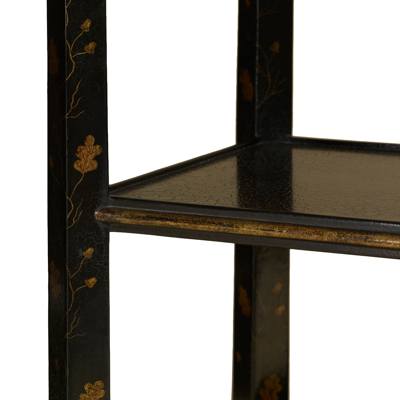 Finish: Tete de Negre Crackled Lacquer Finish with Chinoiserie