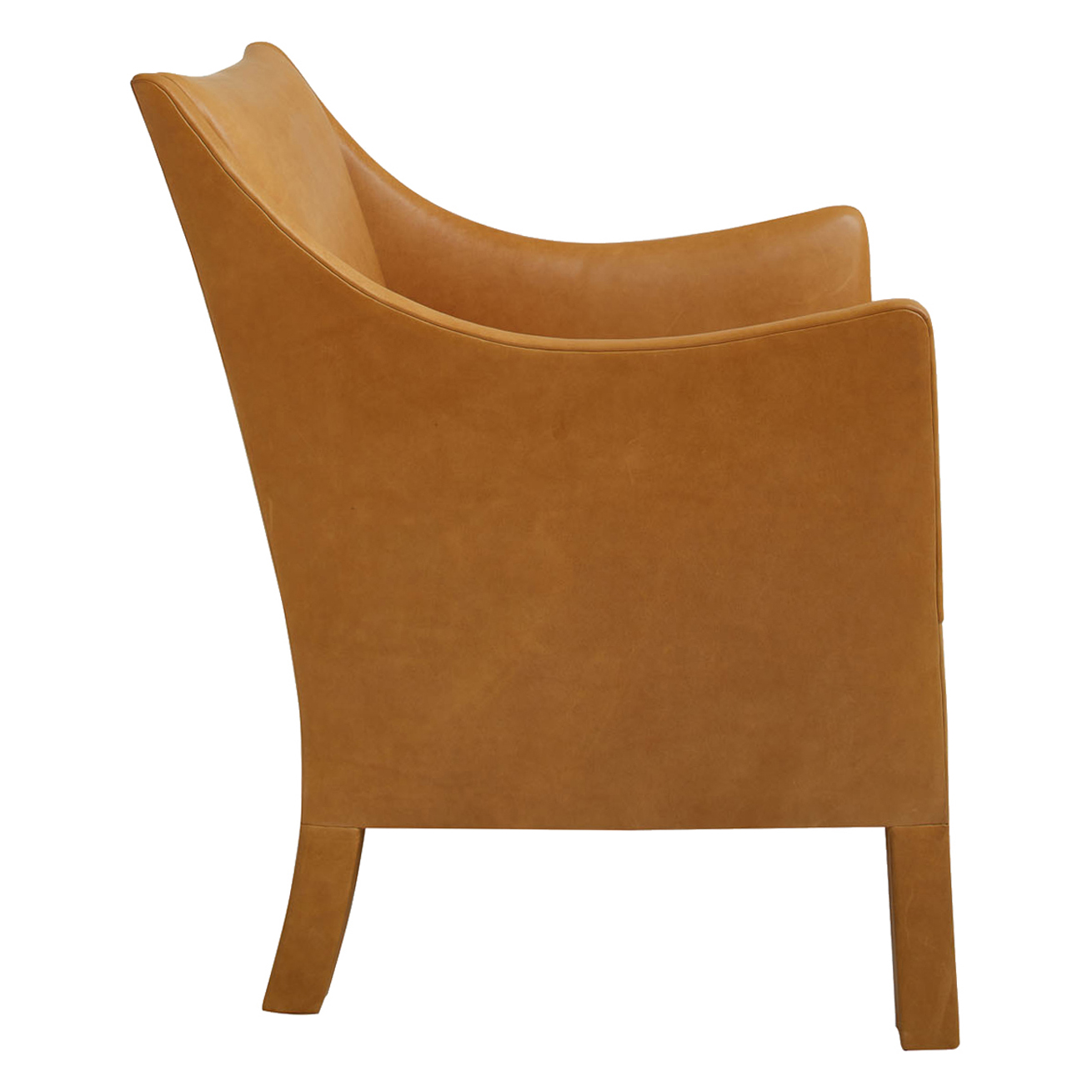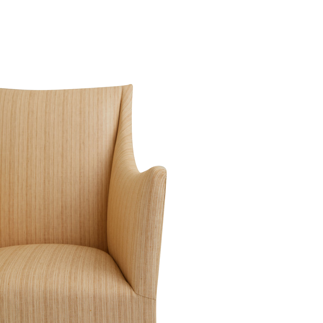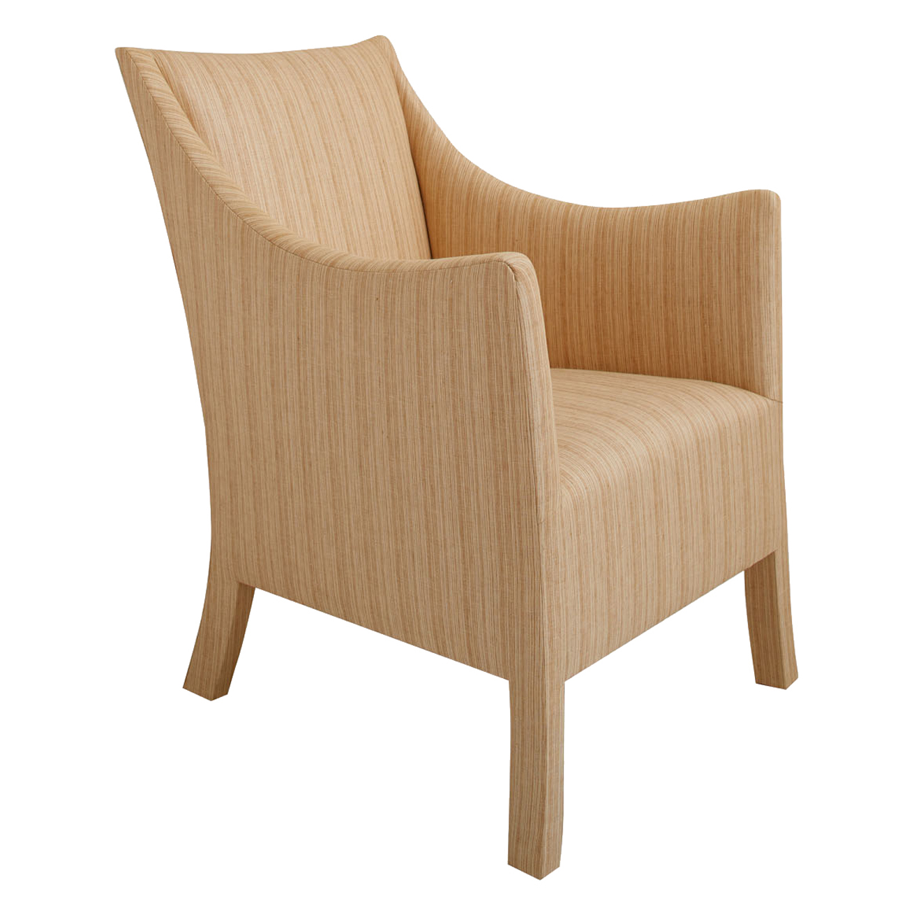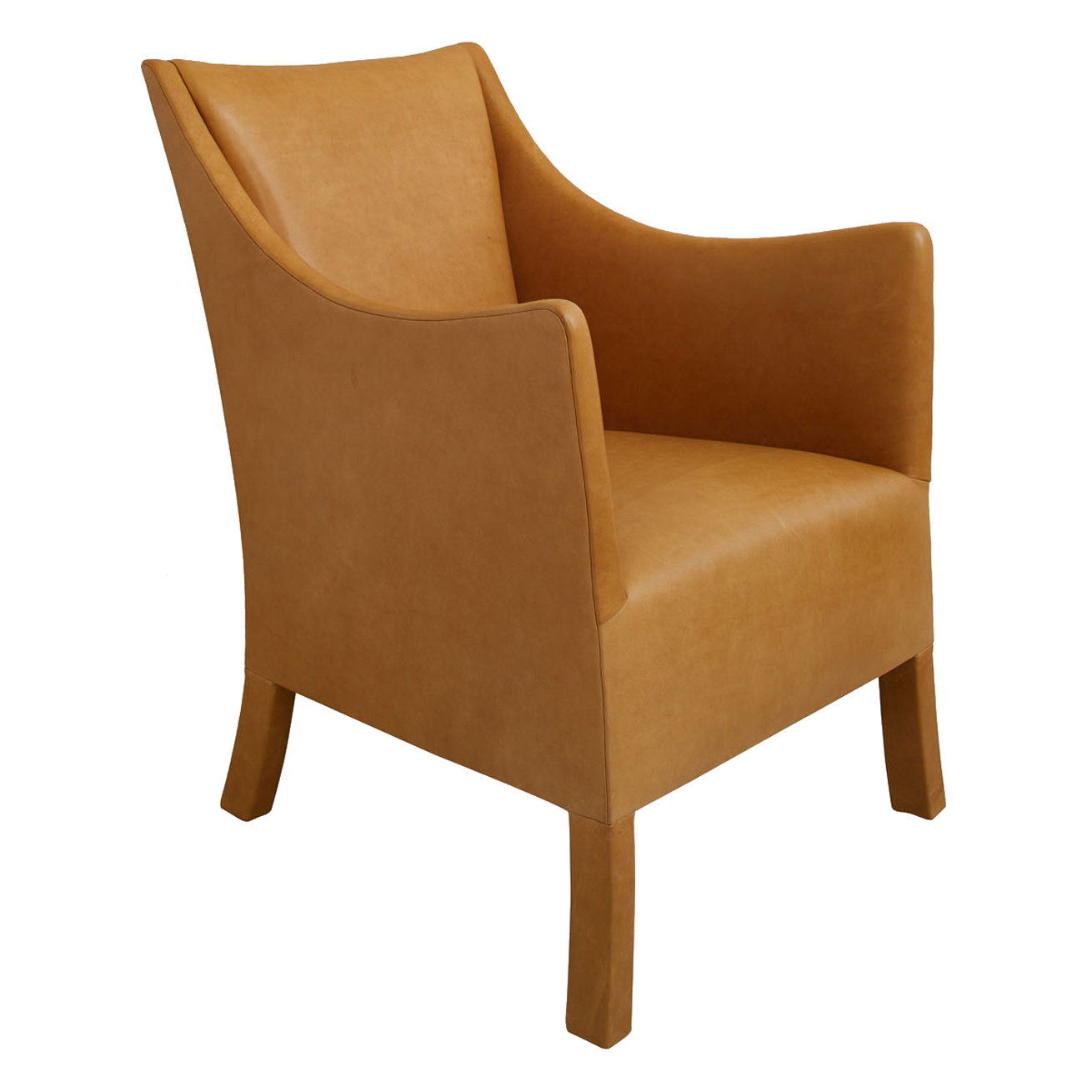 Fully upholstered arm chair. Feet fully wrapped with tight seat and back.
