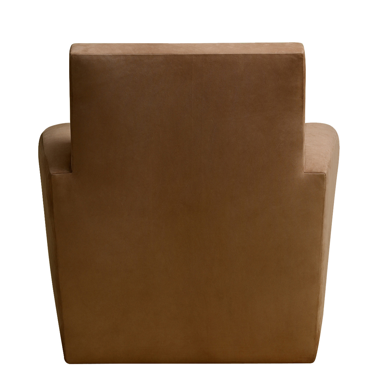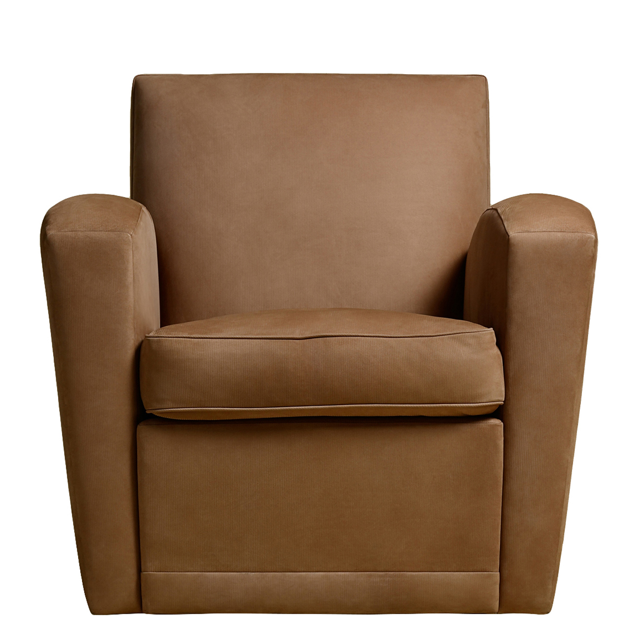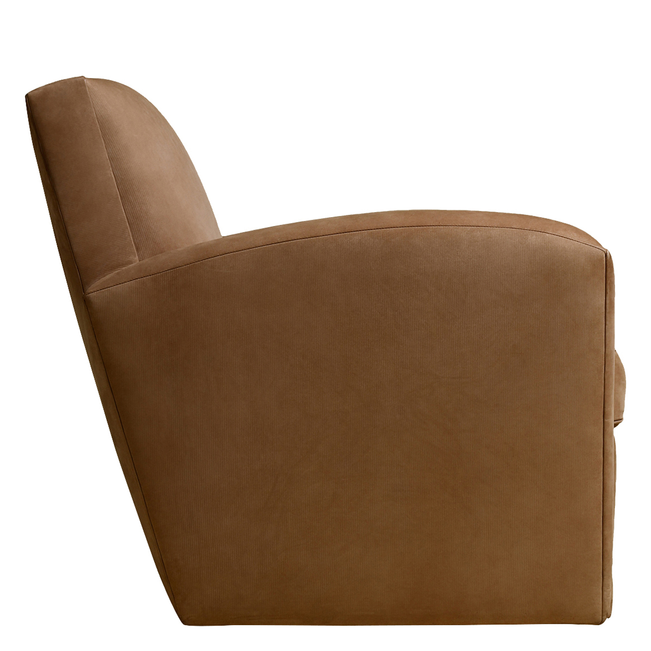 Club chair with tight back and loose seat cushion. Plain seam on body, a self-cord welt on the cushion.