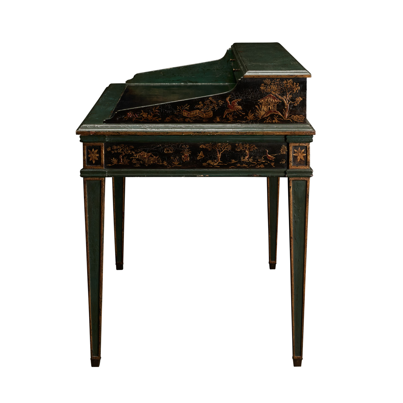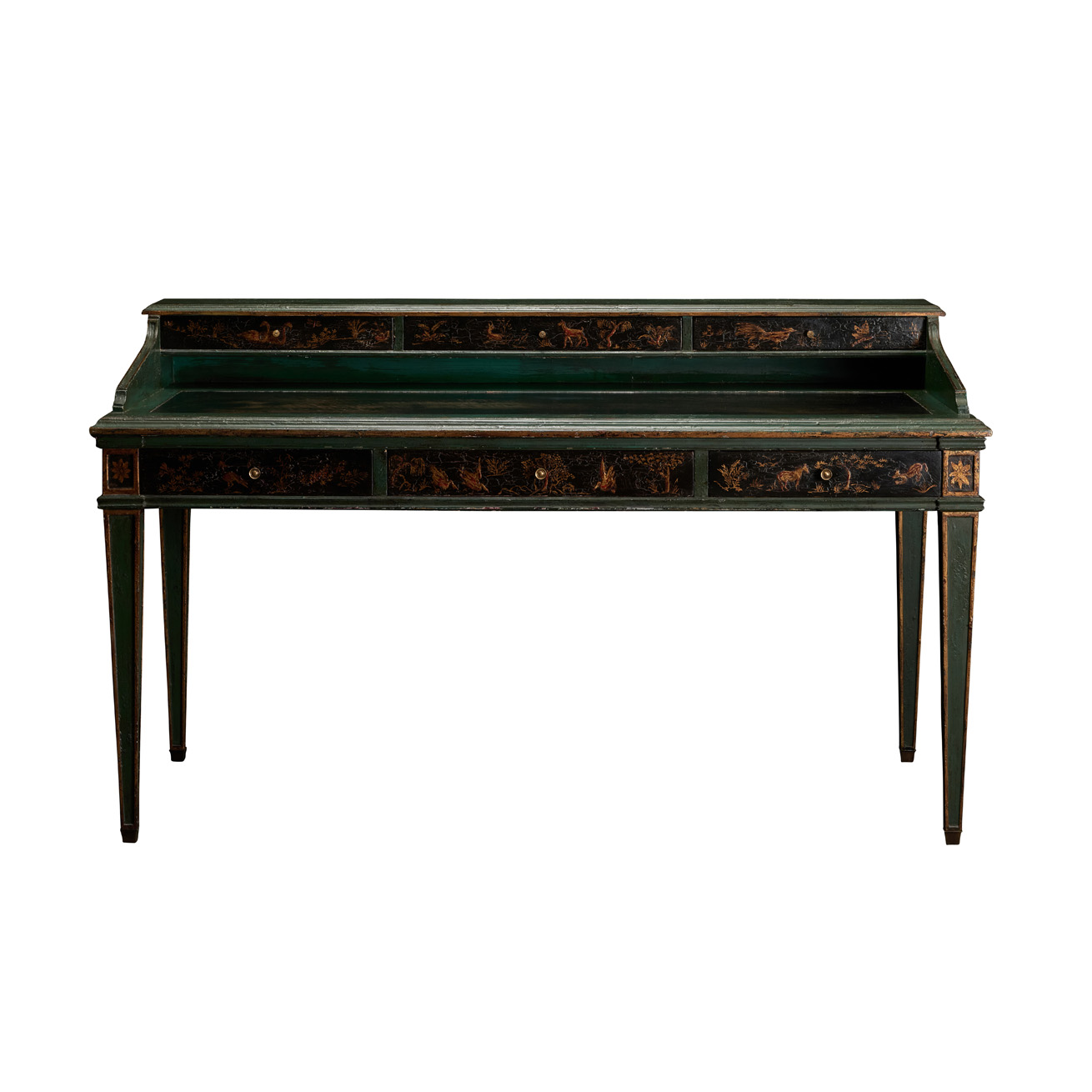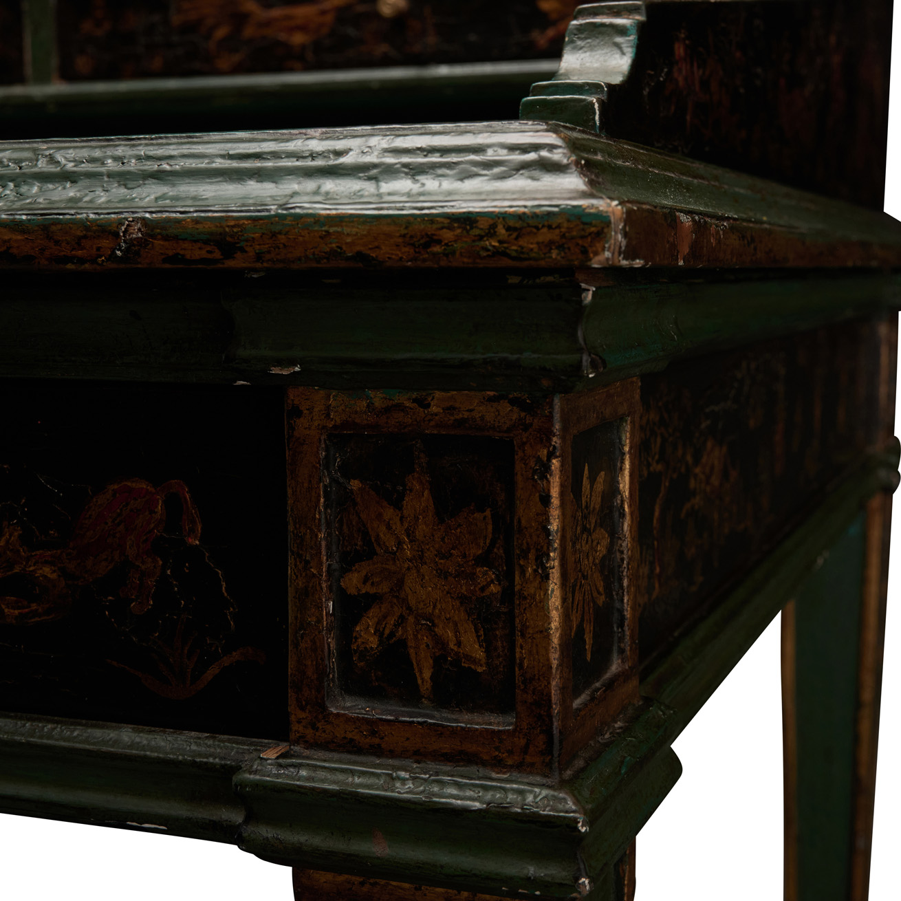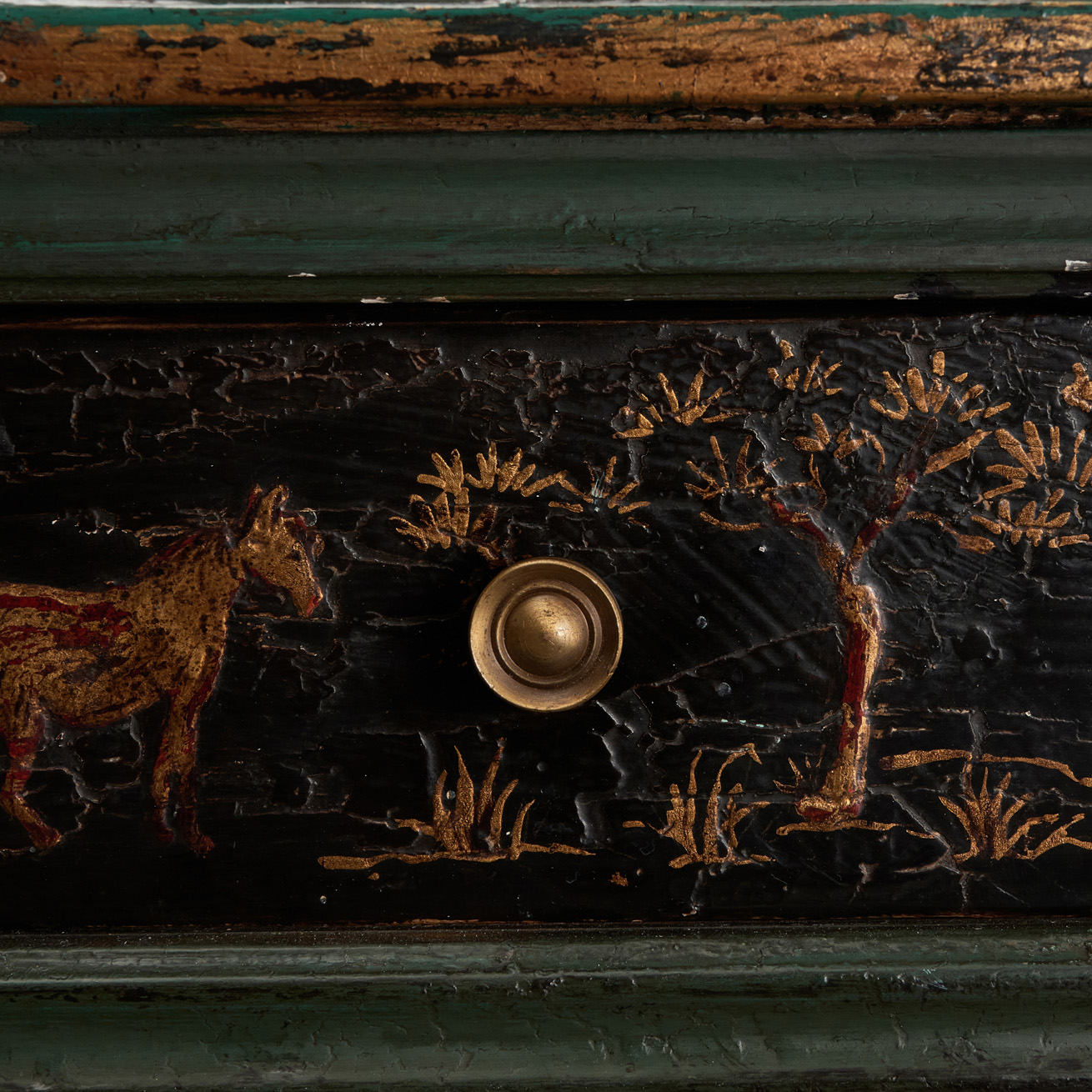 Finish: Tete and Green Distressed Crackled Painted with Chinoiserie