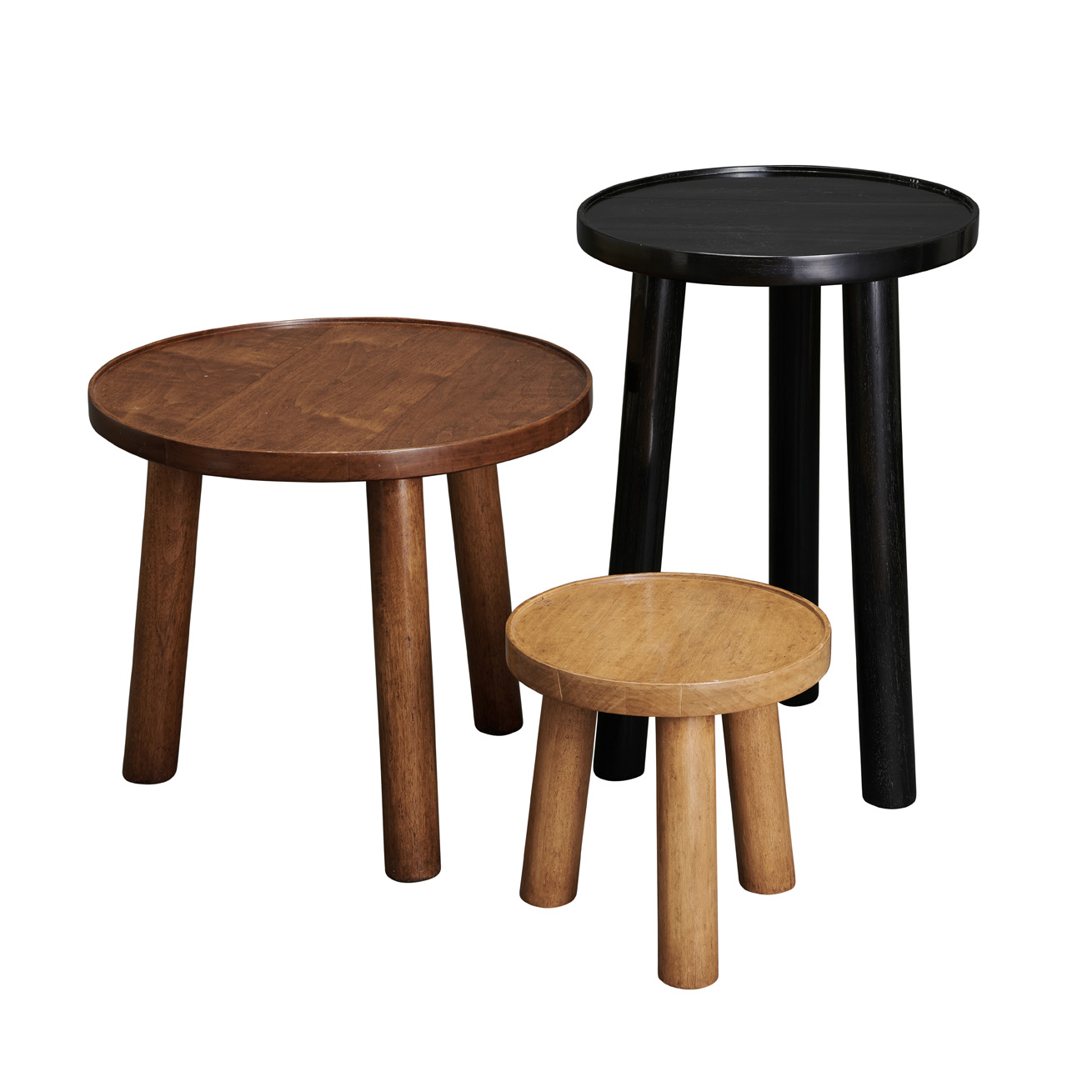 Side table featuring three legs. Tabletop diameter determines size.