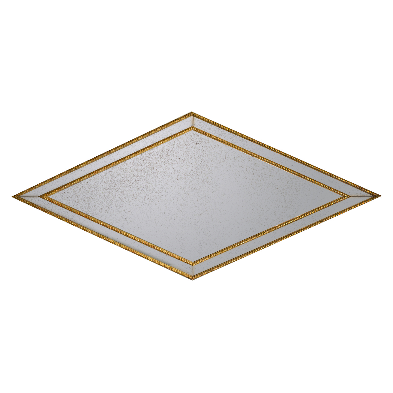 Antiqued mirror in diamond shape.