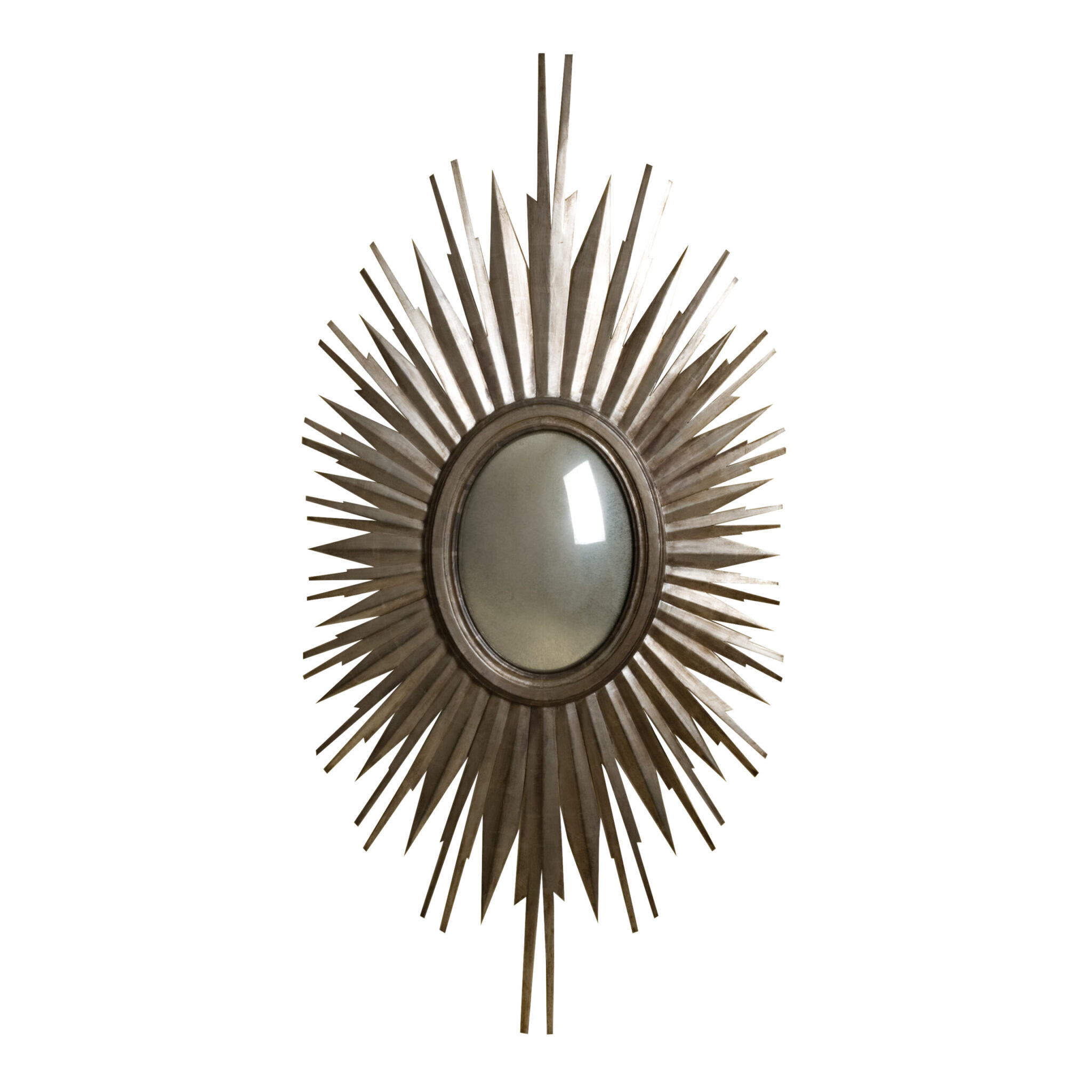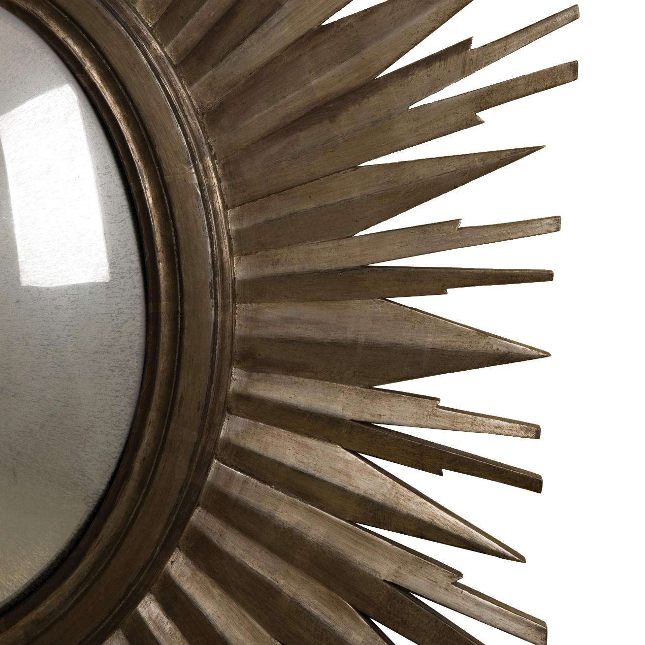 Sunburst handcrafted mirror frame with convex antiqued mirror.