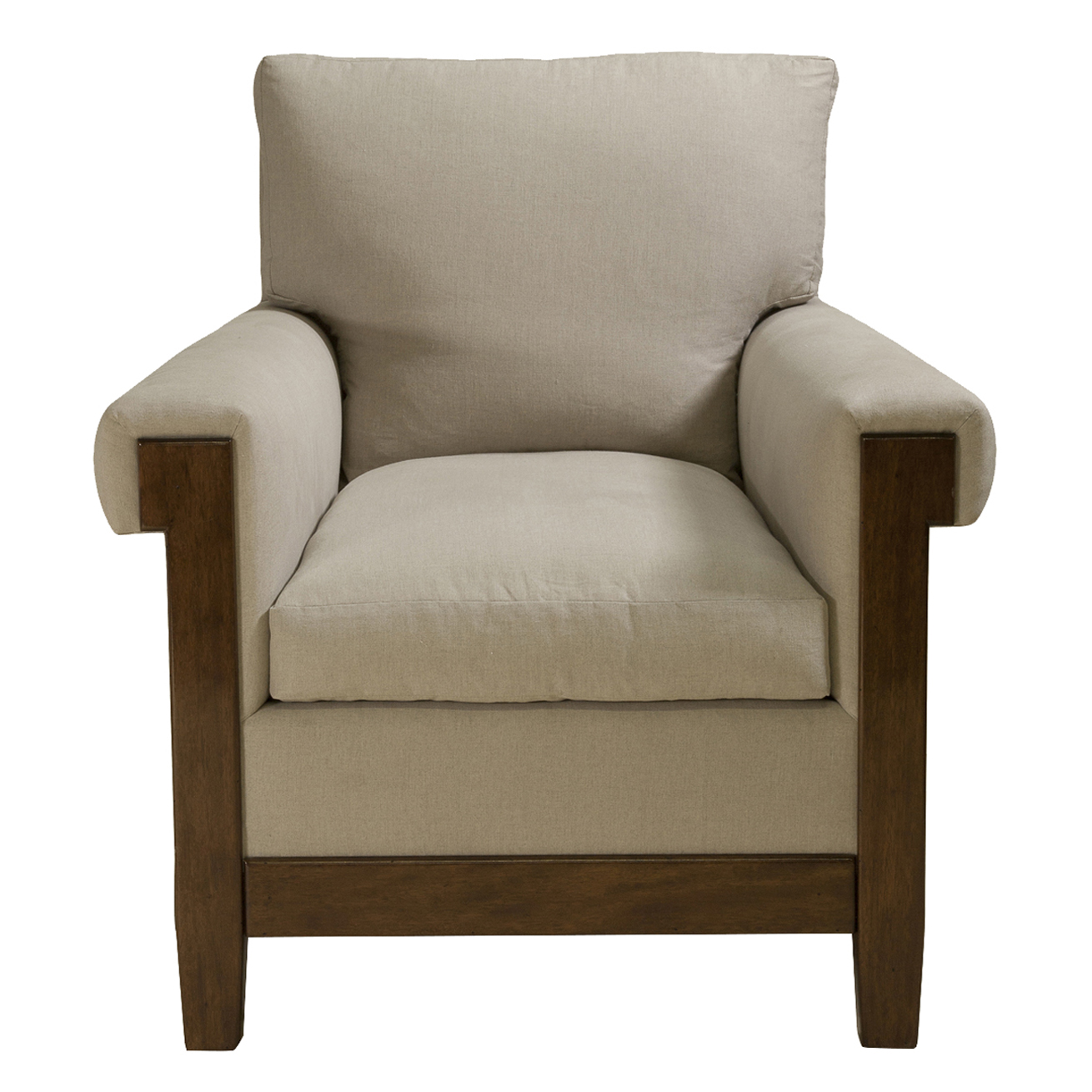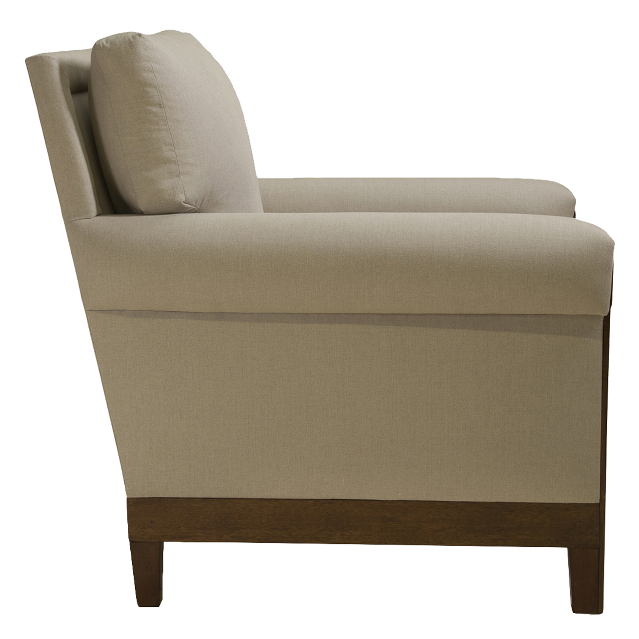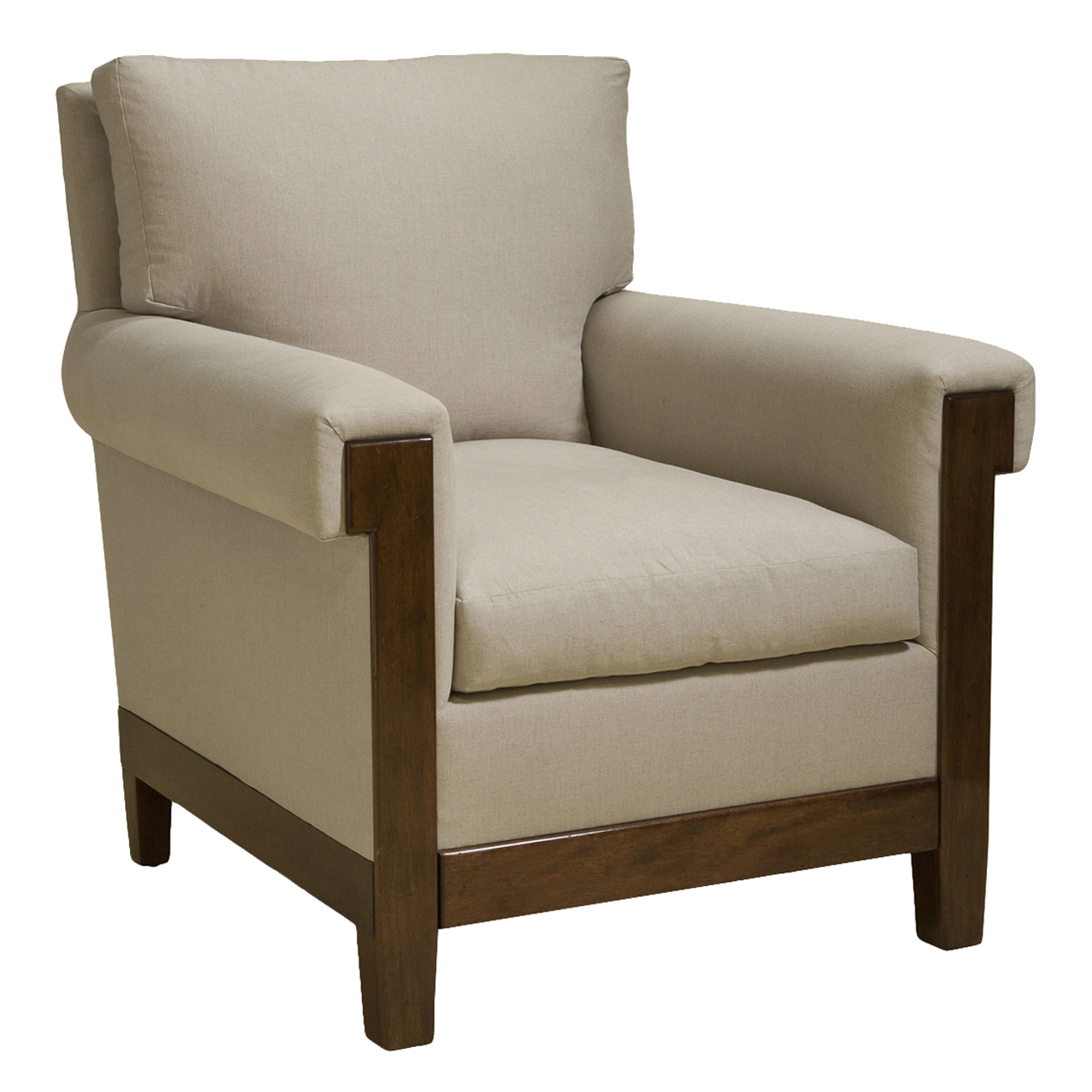 Club chair with loose seat cushion and semi-attached back cushion.