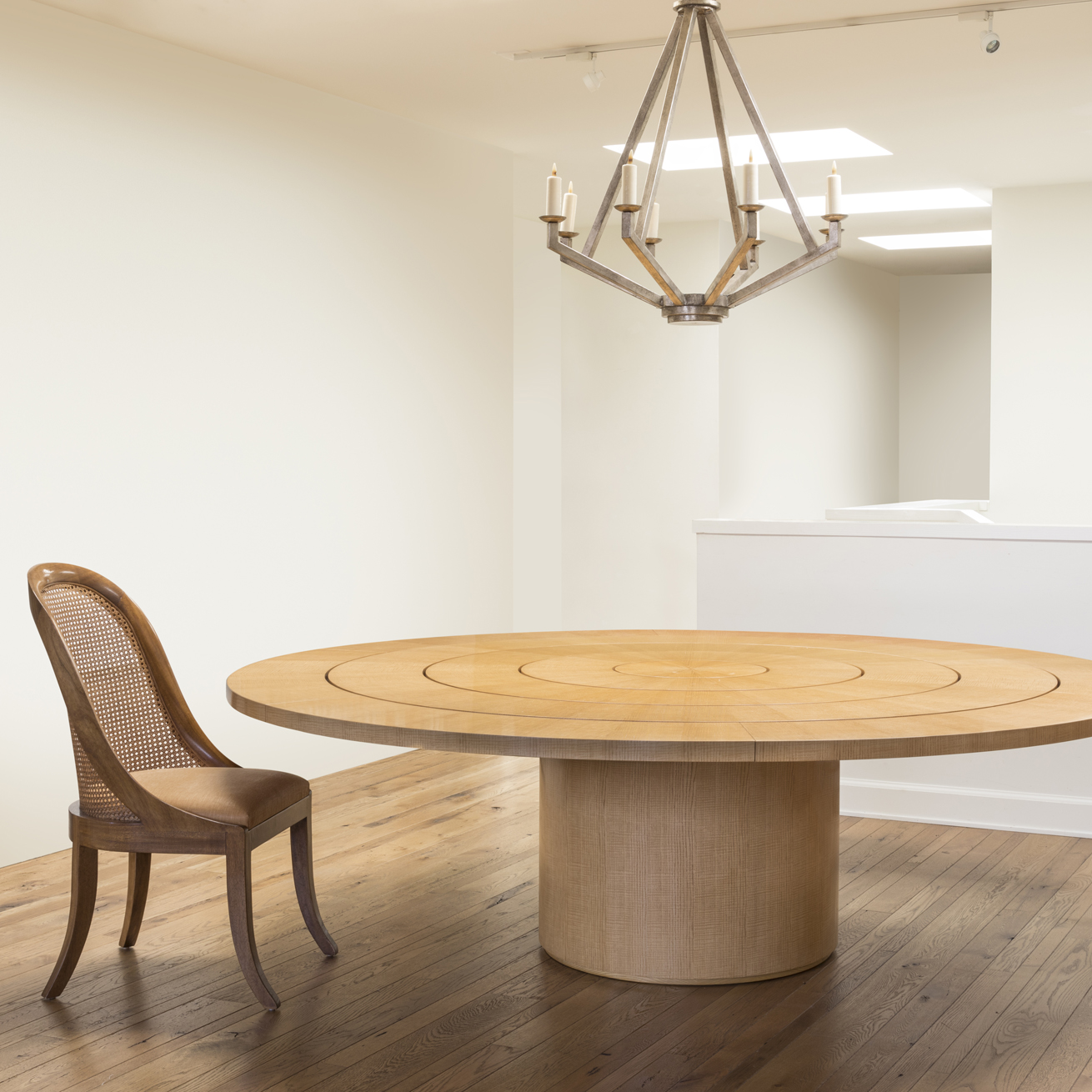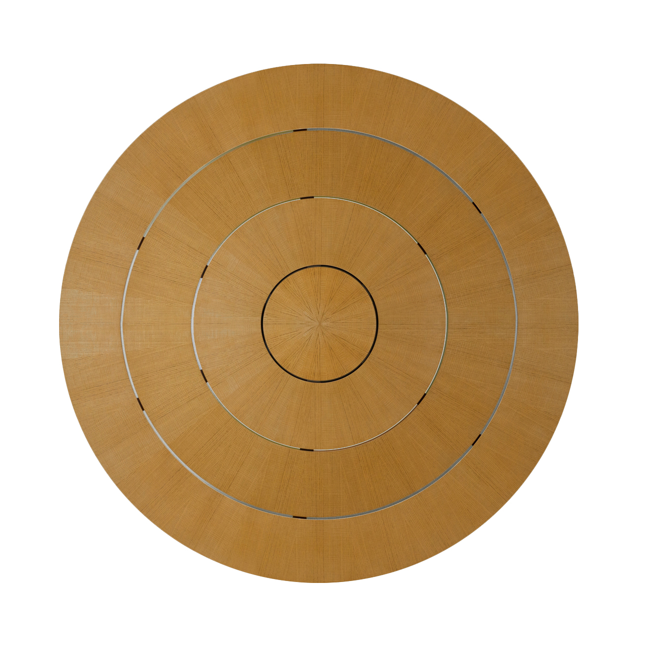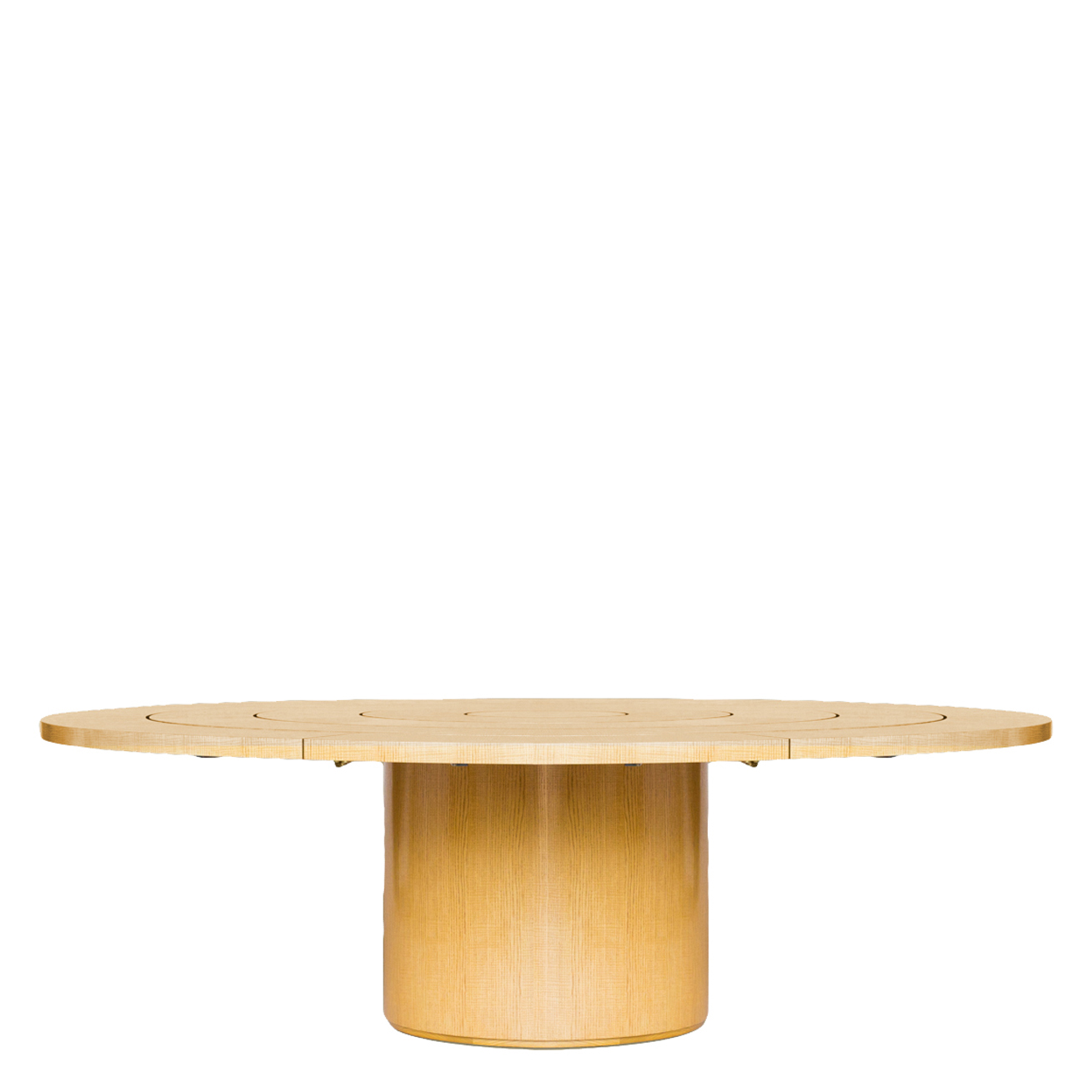 The dining table features four concentric ring top. All portions of rings are stationary.
